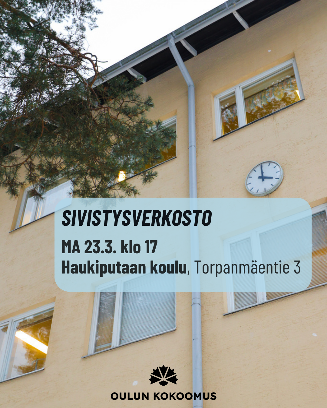 Sivistysverkoston tapaaminen 23.3. klo 17 alkaen Haukiputaan koululla. Tällä kertaa jatketaan keskustelua Oulun kaupungin palveluverkkoselvityksestä. Mukana myös Haukiputaan koulun erityisopettaja…