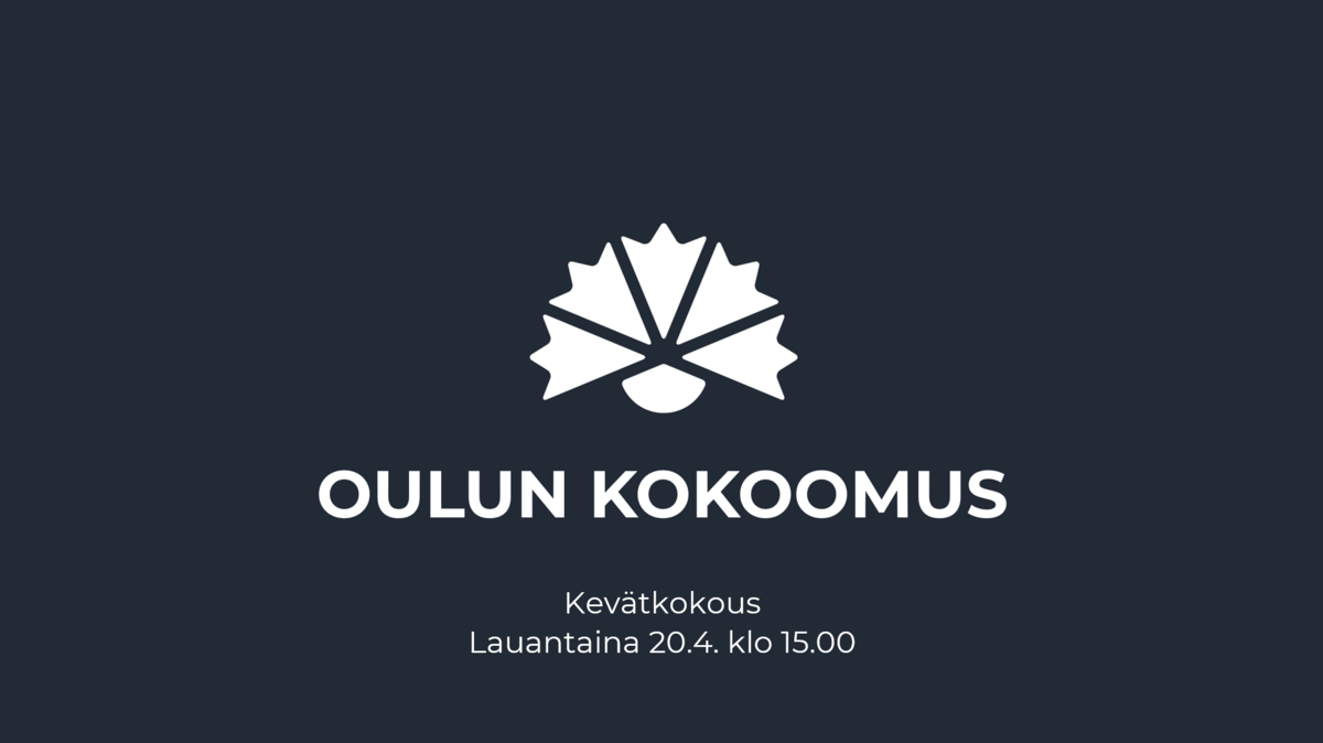 Oulun Kokoomus ry:nkevätkokouspidetään lauantaina 22.4.klo 15.00Pohjois-Pohjanmaan Kokoomuksen piiritoimistolla osoitteessa Vanhantullinkatu 4, 5.krs, 90100 Oulu.